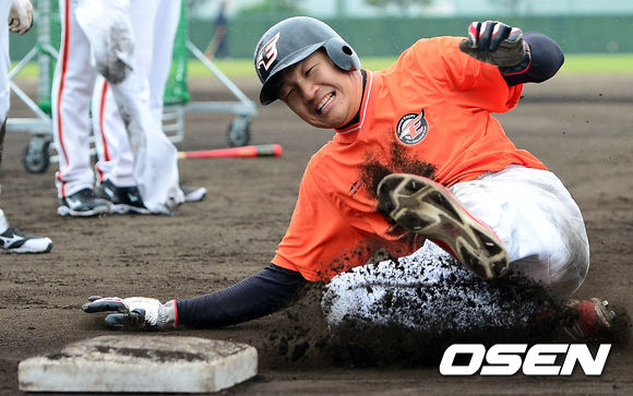 26일 오전 일본 오키나와 고친다구장에서 이양기가 슬라이딩 훈련을 하고 있다.