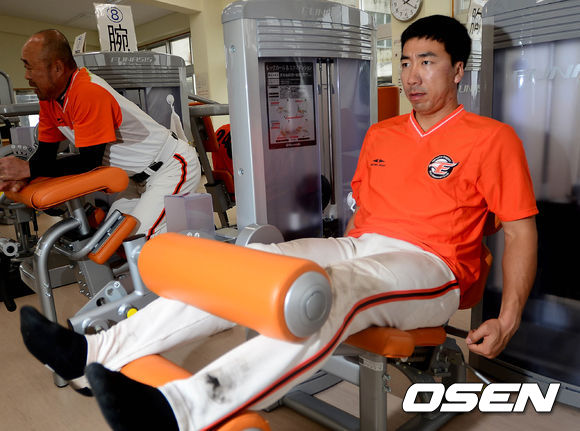26일 오후 일본 오키나와 고친다구장 인근 헬스장에서 고동진이 훈련을 하고 있다.