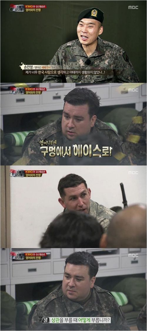 샘 해밍턴은 26일 방송된 MBC 예능프로그램 ‘일밤-진짜사나이’에서 한미 합동훈련을 받기 위해 부대를 찾은 미국인들과 원활한 의사소통을 했다.