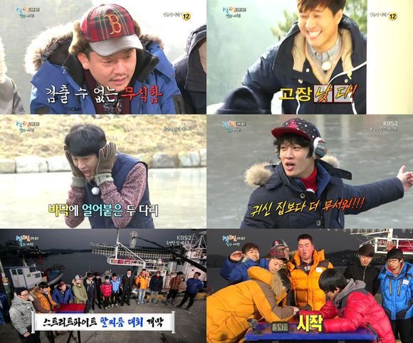 하지만 첫 번째 도전에서 김종민이 깃발 획득에 실패하며 허무하게 기회를 날려야 했고 두 번째 도전에서 야심차게 나선 정준영은 "이거 완전 물이잖아"라며 깨질 듯한 얼음 앞에서 발을 내딛지 못해 실패했다.