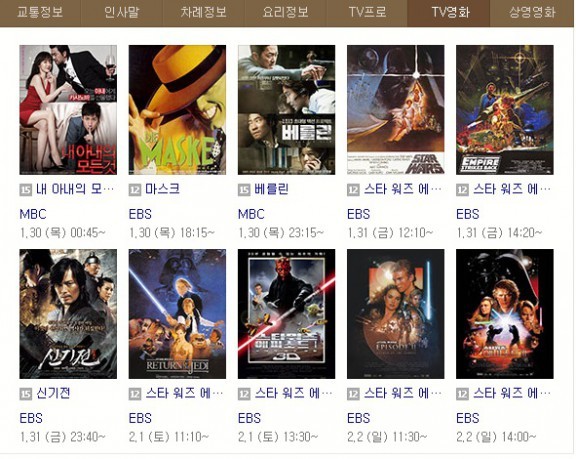 또한 EBS는 명작 영화 '스타워즈'의 에피소드 전편(1~6)을 방영하고, '살인의 추억'·'신기전'·'마스크' 등을 방영한다.