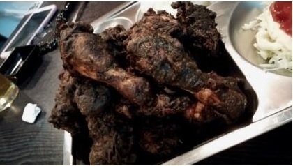 사진 속 치킨은 검은 튀김옷을 입고 있는 것이 특징이다. 가게 주인은 이 검은 튀김옷이 흑인의 검은 피부와 유사하다는 점에서 메뉴명을 착안한 것으로 추정된다.