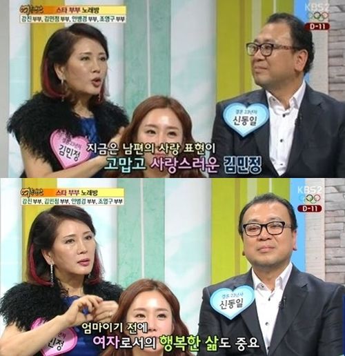 27일 오전 방송된 KBS 2TV '여유만만'은 강진 부부, 김민정 부부, 안병경 부부, 조영구 부부가 함께 출연한 스타 부부 노래방으로 꾸며졌다.