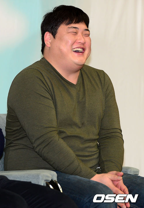 기자간담회, 김준현이 환하게 웃고 있다.