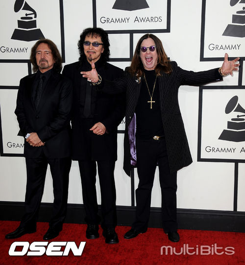포토월 행사에서 가수 기저 버틀러, 토니아이오미, 오즈 오스본 취재진을 향해 포즈를 취하고 있다.