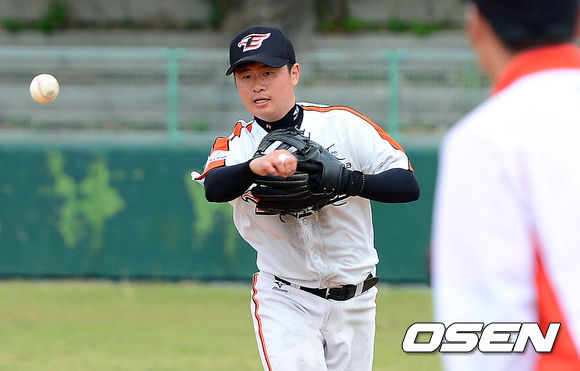 27일 오전 일본 오키나와 고친다구장에서 이창열이 수비 훈련을 하고 있다.