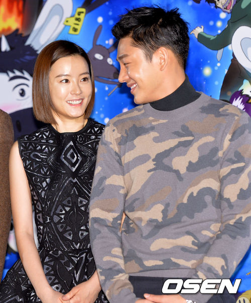 배우 유아인, 정유미가 27일 오후 서울 행당동 CGV왕십리에서 열린 애니메이션 영화 '우리별 일호와 얼룩소' 언론시사회에 참석해 포토타임을 갖고 있다.