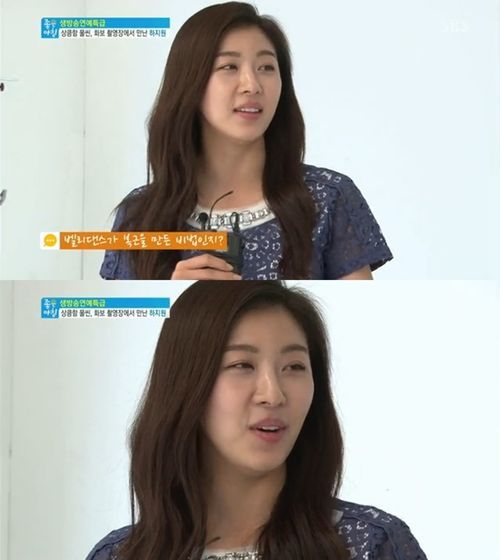 이날 하지원은 영화 '조선 미녀 삼총사'에서 밸리댄스를 춘 것에 대해 이야기하던 중 "복근의 비결이 밸리댄스 인가?"라는 질문을 받았다.