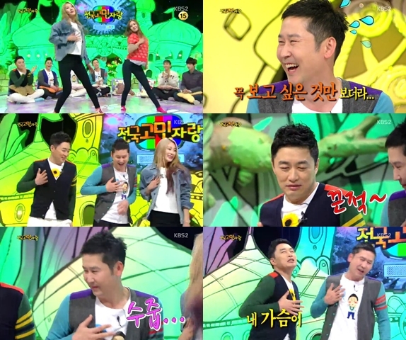‘안녕하세요’ 신동엽이 달샤벳의 가슴앓이춤을 따라하며 수줍어 했다.