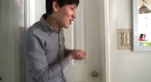 공개된 영상 속 남성은 발랄한 표정으로 화장실 문을 두드리며 '겨울왕국'의 OST "두 유 원 투 빌드 어 스노우맨"(Do you want to build a snowman?)을 열창한다.