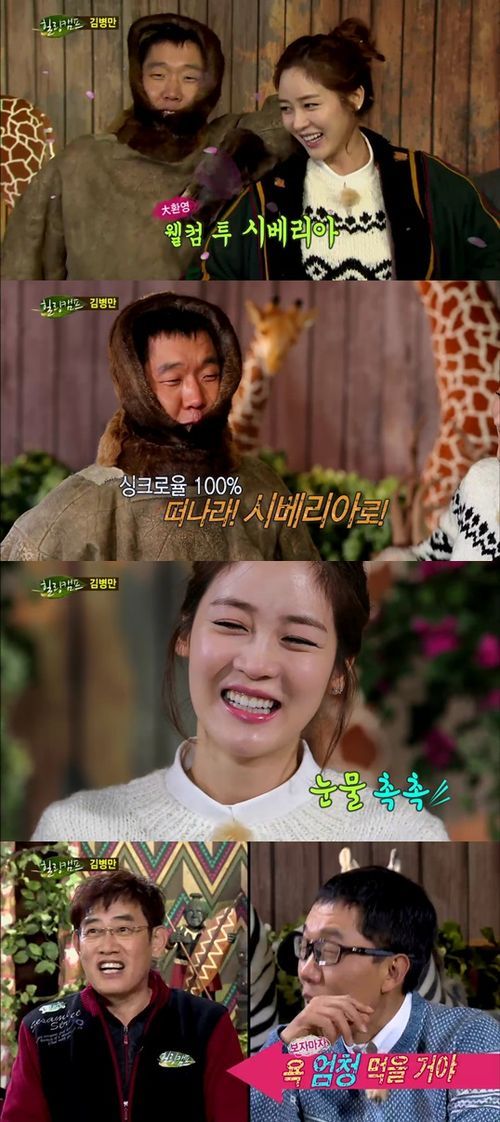김제동은 때때로 성유리에게 호감을 가지고 있는 노총각(?) 캐릭터로 변신하는 가운데, 대부분은 성유리를 배려하는 모습을 보인다. 성유리도 이런 김제동의 역할에 노련하게 호응하며 유쾌한 에너지를 발산하는 중이다. 이날 두 사람은 김병만이 준비해 온 시베리아 전통 털옷을 입고 패션쇼를 연출했다. 맞춤 옷을 입은 듯한 김제동과, 뭘 입어도 모델포스를 자랑하는 성유리는 갑작스럽게 런웨이 포즈를 취하며 찰떡 호흡을 과시했다.