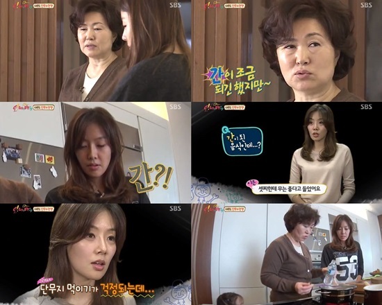 이은은 지난 27일 오후 방송된 SBS 예능프로그램 '오 마이 베이비'에서 아이들에게 먹일 음식을 시어머니와 함께 요리하던 중 단무지와 녹두죽을 놓고 의견 차이를 보였다.