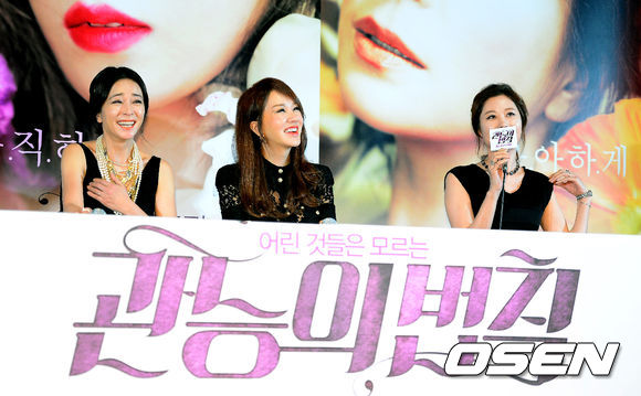 28일 오후 서울 롯데시네마 건대입구에서 열린 영화 '관능의 법칙' 언론시사회에서 배우 조민수, 엄정화, 문소리가 간담회 도중 미소짓고 있다.