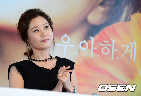 28일 오후 서울 롯데시네마 건대입구에서 열린 영화 '관능의 법칙' 언론시사회에서 배우 문소리가 질문에 귀기울이고 있다.