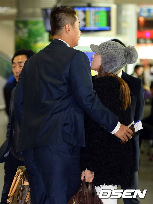아내와 인사 나누는 이대호,'여전한 잉꼬부부'
