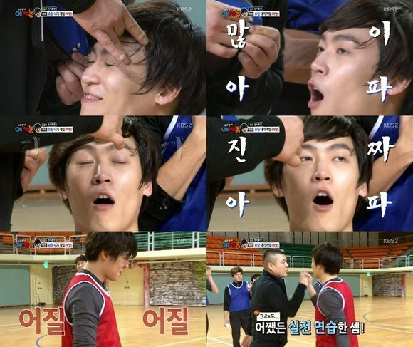 가수 존박이 천하장사표, 강호동의 딱밤을 맞고 정신이 혼미한 모습을 보여 웃음을 자아냈다.