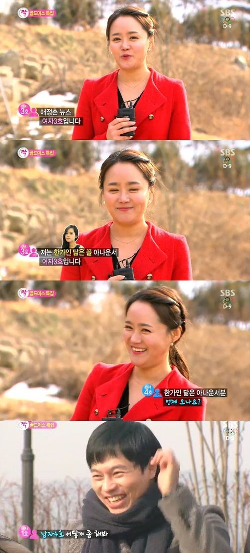 그러나 남자 4호는 ‘케이블계 한가인’이란 여자 3호의 소개에 “한가인 닮은꼴 아나운서 분은 언제 오시나요”라고 돌직구 질문을 던져 여자 3호를 멋쩍게 만들었다.