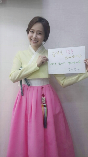 공개된 사진 속 유소영은 한복을 곱게 차려 입고 카메라를 향해 환한 미소를 짓고 있다. 그는 "즐거운 명절 보내세요. 새해 복 많이 받으세요"라고 쓴 종이를 들고 새해 인사를 전했다.