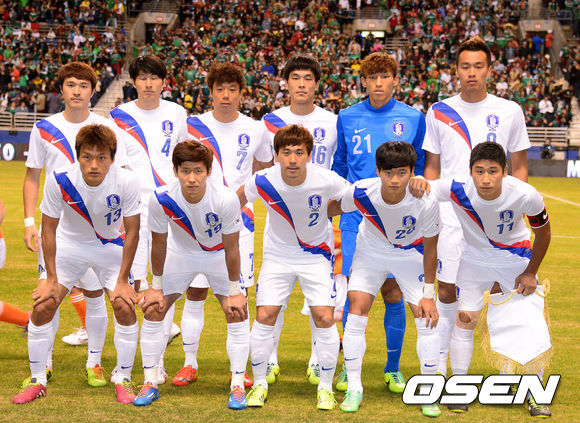 경기에 앞서 한국 대표팀 베스트 11이 포즈를 취하고 있다.