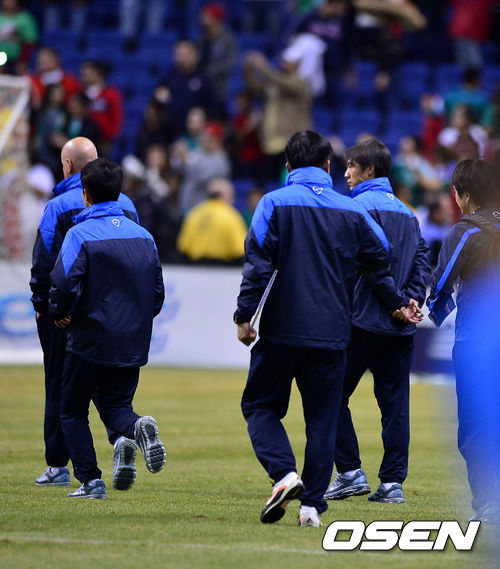홍명보 감독이 이끄는 축구국가대표팀은 30일(이하 한국시간) 미국 텍사스주 샌안토니오에 위치한 알라모돔에서 벌어진 멕시코대표팀과의 평가전에서 알란 풀리도에 해트트릭을 내주며 0-4로 완패했다. 지난 1998년 프랑스 월드컵 조별리그서 패한 뒤 한국은 5경기만에 멕시코에 패배를 당했다. 그리고 한국은 멕시코와 상대전적서 12전 4승 5무 6패로 뒤지게 됐다.