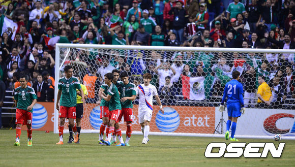 홍명보 감독이 이끄는 축구국가대표팀은 30일(이하 한국시간) 미국 텍사스주 샌안토니오에 위치한 알라모돔에서 벌어진 멕시코대표팀과의 평가전에서 알란 풀리도에 해트트릭을 내주며 0-4로 완패했다. 지난 1998년 프랑스 월드컵 조별리그서 패한 뒤 한국은 5경기만에 멕시코에 패배를 당했다. 그리고 한국은 멕시코와 상대전적서 12전 4승 5무 6패로 뒤지게 됐다.