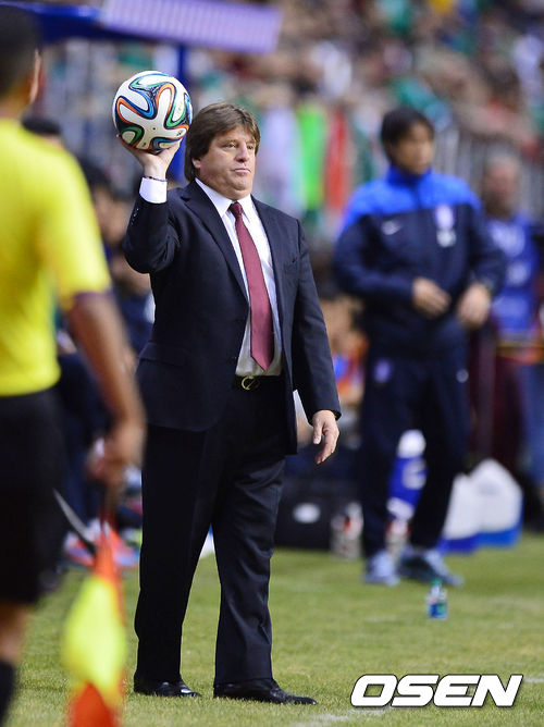 전반 멕시코 미겔 에레라 감독이 볼을 들고 선수에 건네주고 있다. /spjj@osen.co.kr