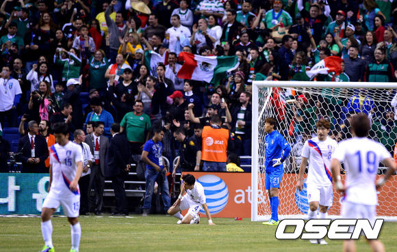홍명보 감독이 이끄는 축구국가대표팀은 30일(이하 한국시간) 미국 텍사스주 샌안토니오에 위치한 알라모돔에서 벌어진 멕시코대표팀과의 평가전에서 알란 풀리도에 해트트릭을 내주며 0-4로 완패했다. 지난 1998년 프랑스 월드컵 조별리그서 패한 뒤 한국은 5경기만에 멕시코에 패배를 당했다. 그리고 한국은 멕시코와 상대전적서 12전 4승 5무 6패로 뒤지게 됐다.