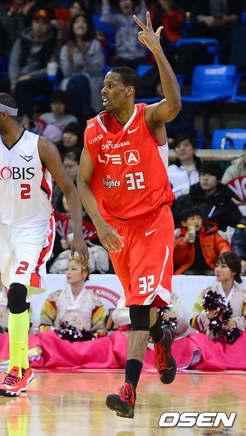 2쿼터 SK 헤인즈가 3점슛을 넣은 뒤 기뻐하고 있다.