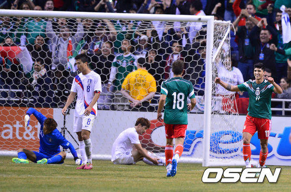 홍명보 감독이 이끄는 축구국가대표팀은 30일(이하 한국시간) 미국 텍사스주 샌안토니오에 위치한 알라모돔에서 벌어진 멕시코대표팀과의 평가전에서 알란 풀리도에 해트트릭을 내주며 0-4로 완패했다. 지난 1998년 프랑스 월드컵 조별리그서 패한 뒤 한국은 5경기만에 멕시코에 패배를 당했다. 그리고 한국은 멕시코와 상대전적서 12전 4승 5무 6패로 뒤지게 됐다.