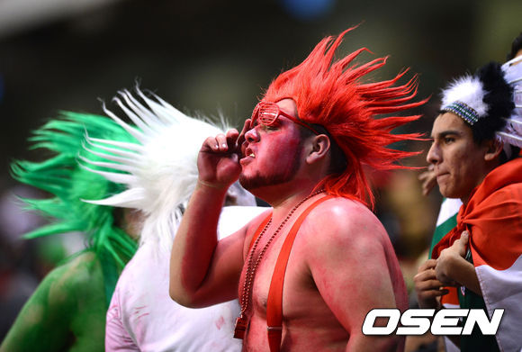 후반 온 몸을 붉게 페인팅한 멕시코 관중이 열띤 응원을 하고 있다./spjj@osen.co.kr