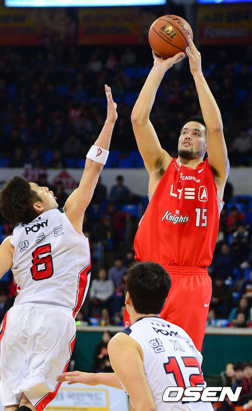 4쿼터 SK 김민수가 점프슛을 시도하고 있다.