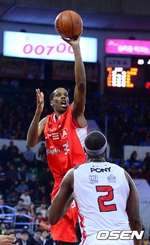 4쿼터 SK 헤인즈가 점프슛을 시도하고 있다.