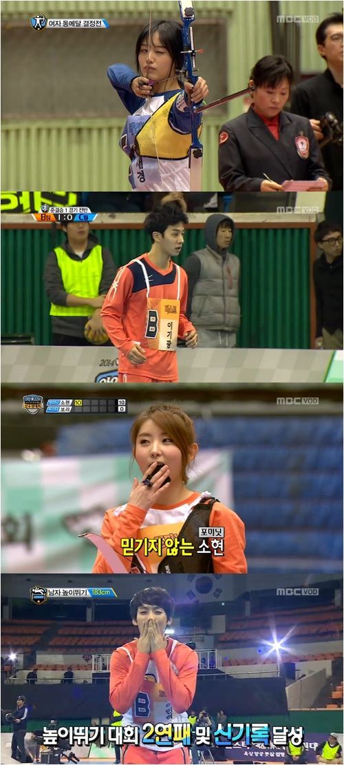 MBC는 지난 30일 ‘아이돌 육상·양궁·풋살·컬링 선수권대회’(이하 ‘아육대’) 1부를 방송했다. 1부에서 우승자가 가려진 종목은 여자 양궁 개인전과 남자 높이뛰기. 포미닛 권소현과 비투비 이민혁이 금메달을 차지했다. 또한 풋살 준결승전과 남녀 60m 달리기 예선전이 공개됐다. 가장 관심을 받고 있는 육상과 풋살 결승전, 그리고 이번에 신설된 컬링 경기는 2부에 막이 오른다.