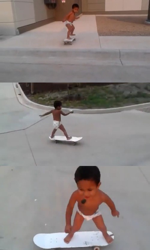 “2살 아이의 스케이트보드 실력이 장난 아니다”라며 소개한 이 영상을 살펴 보면 한 꼬마 아이는 신발도 신지 안은 채 기저귀만 차고 스케이트보드를 타고 있다.