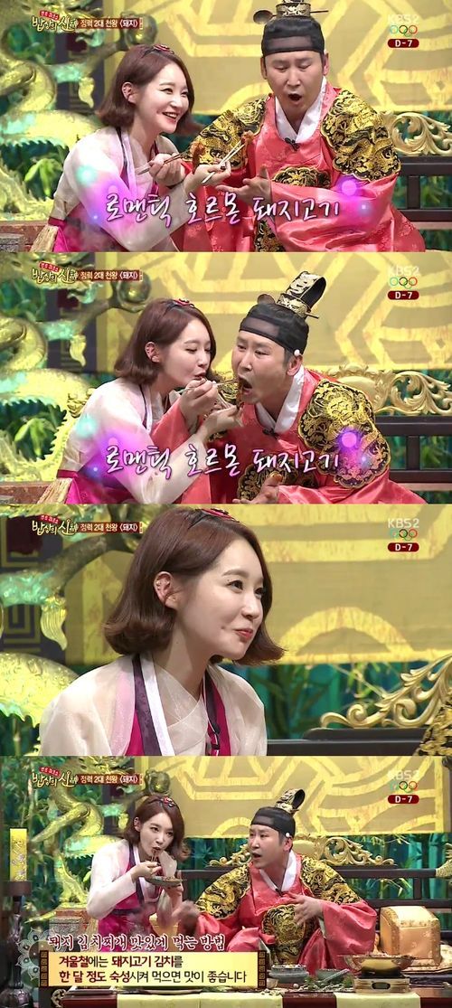 이날 대게에 이어 돼지고기가 정력에 좋은 음식으로 소개됐다. 돼지고기 엿과 돼기고기 김치찜이 왕의 상에 올랐다.