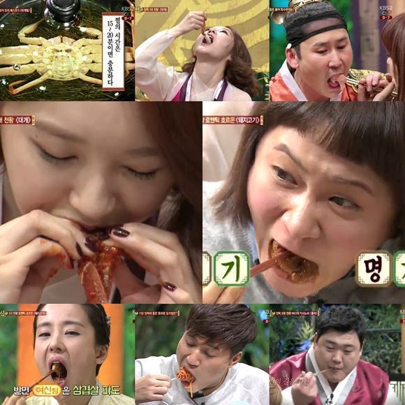 정력에 좋은 재료로 가장 먼저 대게가 소개됐다. 몇년 생의 대게가 가장 맛있는지, 어떻게 손질해야 하는지, 몇 분 동안 쪄야 맛있는지 등 대게에 대해 몰랐던 정보들을 상세하게 전했다. 또한 왕이 맛보기 전 독이 들었는지 아닌지 확인하는 기미상궁 역을 맡은 강민경이 대게찜과 대게 회를 맛깔나게 먹어 시청자들의 침샘을 자극했다.