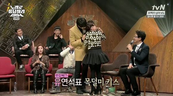 그는 31일 방송된 tvN '노래로 응답하라'에서 "어깨를 잡긴 좀 그렇고 해서 여기를 잡는다"며 화제가 된 목덜미 키스를 재연했다.