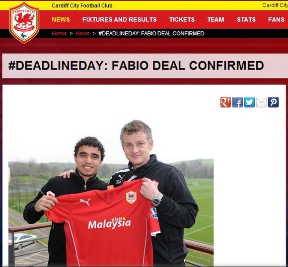 카디프 시티는 31일(이하 한국시간) 공식 홈페이지를 통해 파비우와 자하의 임대 영입 소식을 전했다. 두 선수 모두 임대이며, 파비우는 올 시즌 끝나고 맨유와 계약기간이 종료되기 때문에 완전 영입의 가능성도 있다. 이적료는 공개하지 않았다.