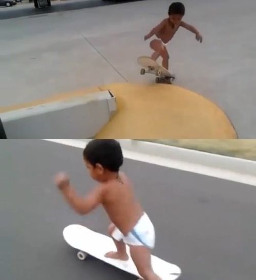 “2살 아이의 스케이트보드 실력이 장난 아니다”라며 소개한 이 영상을 살펴 보면 한 꼬마 아이는 신발도 신지 안은 채 기저귀만 차고 스케이트보드를 타고 있다.