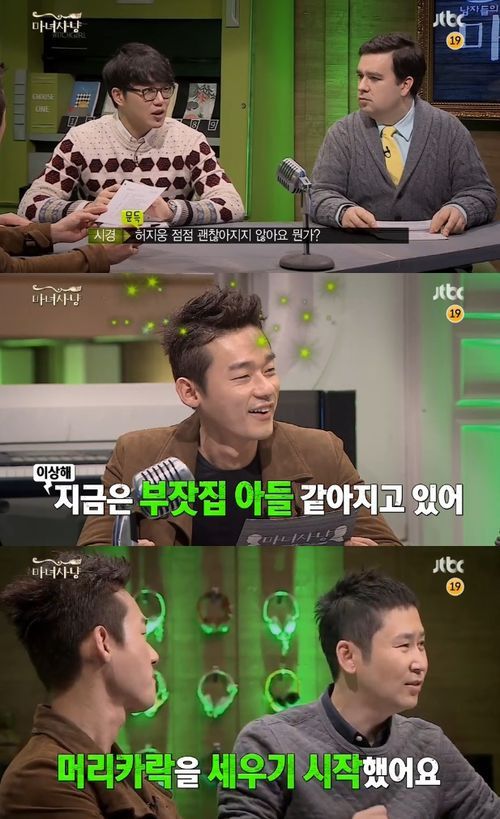 신동엽은 "허지웅이 어느 순간부터 머리카락을 세우기 시작했다. 욕망을 제대로 분출하지 못한 채 머리카락이라도 세우는것 아니냐"고 말해 웃음을 자아냈다.