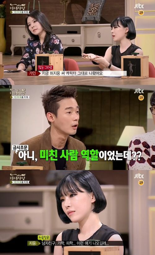 가인은 "허지웅 씨 캐릭터 그대로 나왔다"고 말하자 허지웅은 발끈하며 "미친사람으로 나왔는데?"라고 발끈했다.