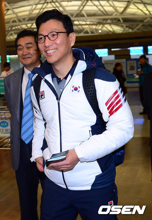 선수단장인 김재열 대한빙상경기연맹 회장이 출국장에 들어서고 있다.