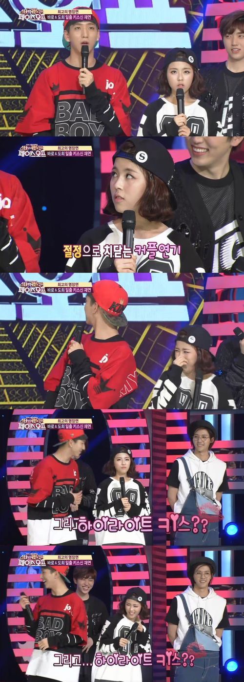 그룹 B1A4의 바로와 걸그룹 타이니지의 도희가 ‘응답하라 1994’의 키스신을 재연했다.
