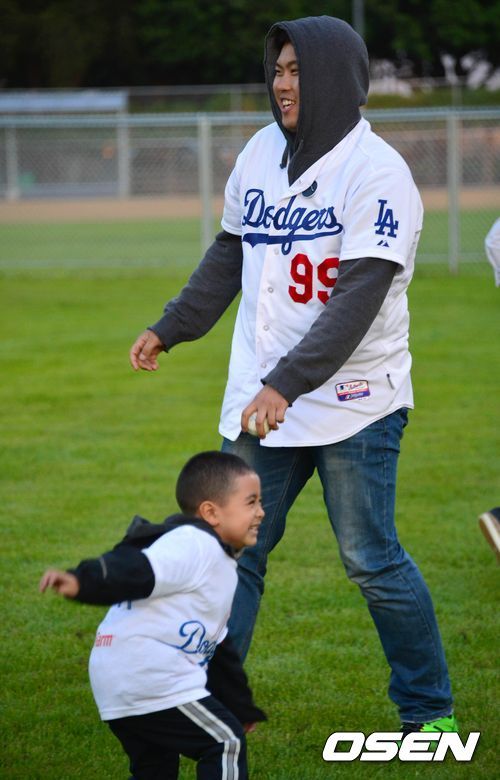 이날 행사에는 야시엘 푸이그, 브라이언 윌슨 등 다저스 주요선수들이 참석했다. 레드와인색으로 머리를 염색한 류현진의 모습도 보였다. 류현진은 어린이들과 어울려 야구를 가르쳐주면서 얼굴에 미소를 지었다.