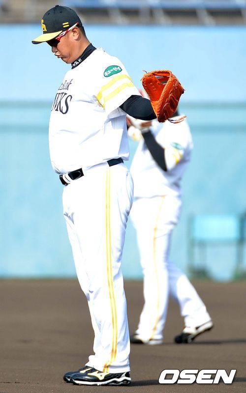 1일(현지시간) 오전 일본 소프트뱅크로 이적한 '빅보이' 이대호가 일본 미야자키 이키메노모리 운동공원에서 열린 스프링캠프에 참가해 캐치볼을 준비하고 있다.