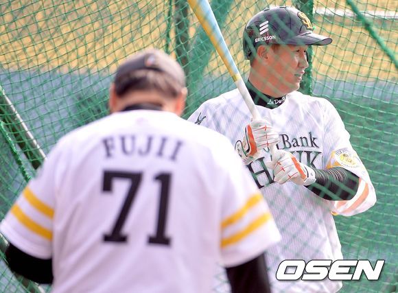 '소프트뱅크' 이대호,'후지이 타격코치 앞에서 연습 시작'