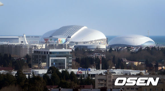 소치국제공항에서 찍은 개,폐막식이 열리는 피시트 올림픽 스타디움.