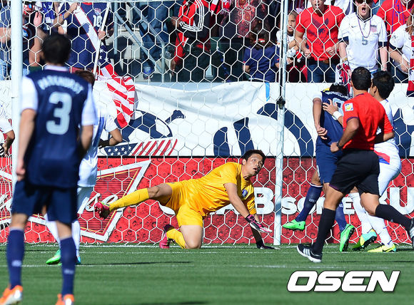 전반 한국 정성룡이 미국 크리스 원더롭스키에게 선제골을 허용하고 있다. /spjj@osen.co.kr