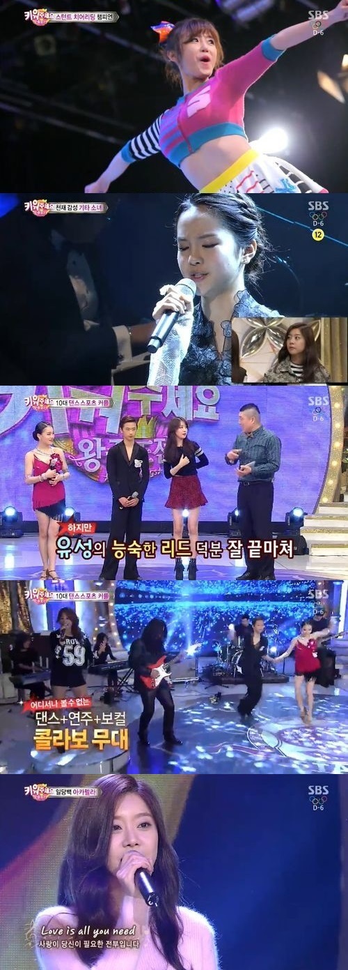 지난 1일 방송된 '스타킹'은 '키워주세요 왕중王전'으로 꾸며졌다. 총 8팀이 출사표를 던진 가운데, 걸스데이, 에일리, 효성(시크릿), 김도균 등이 함께 콜라보레이션 무대를 펼치며 시청자들의 눈과 귀를 집중시켰다. 이들은 프로페셔널한 무대매너는 물론, 남몰래 갈고 닦은 장기를 선보여 큰 환호를 샀다.