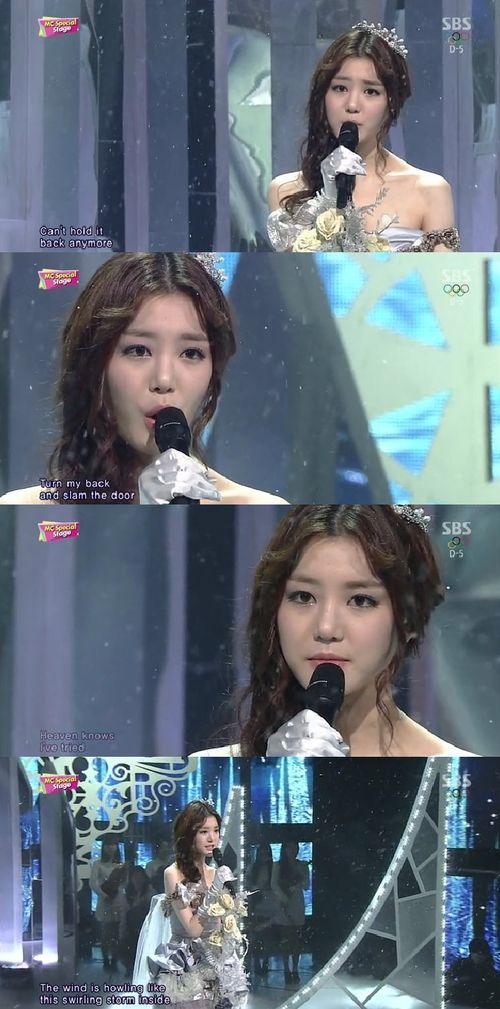 배우 이유비가 애니메이션 '겨울왕국'의 OST '렛 잇 고(Let it go)'를 부르며 SBS '인기가요' MC 신고식을 가졌다.